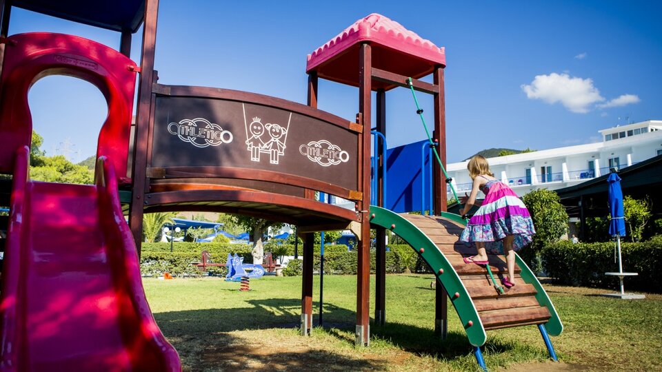 Hotelski sadržaji: Recepcija,lift, menjačnica, restoran, a la carte restoran, bar kraj bazena, bar na plaži, bazen sa delom za decu, dečije igralište,mini klub za decu, tenis ,basket, odbojka na pesku, mini fudbal, stoni tenis, teretana, dnevne i večernje animacije, konferencijska sala, parking.