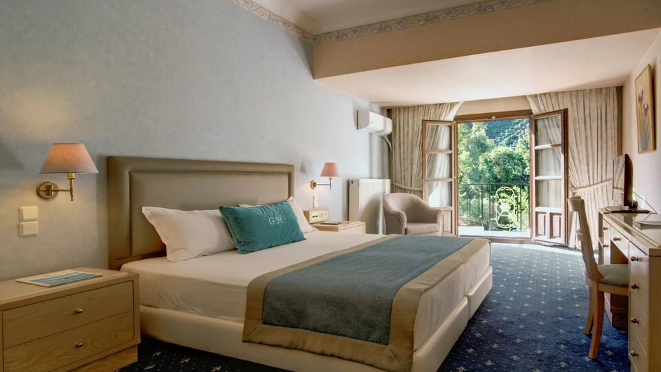 Opis i lokacija : Hotel pripada poznatom lancu hotela Mitsis. Nalazi se u mestu Kamena Vurla koje je poznato po termalnim izvorima. Hotel je opremljen bazenima sa termalnom vodom, termalnom banjom i održavanim vrtovima sa slikovitim stazama za šetnju, stvarajući savršenu atmosferu za opuštanje.Od aerodroma u Atini udaljen je oko 160 km .