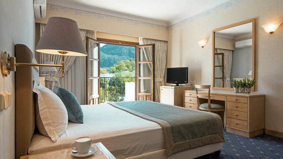 Standard soba pogled planina – Površine oko 28m2 sa pogledom na zelene vrtove ili planine. Sadrže francuski ili dva odvojena kreveta i pomoćni ležaj. Maksimalni broj osoba u sobi je do četiri. Nije moguća kombinacija 3 odrasle + 1 dete.