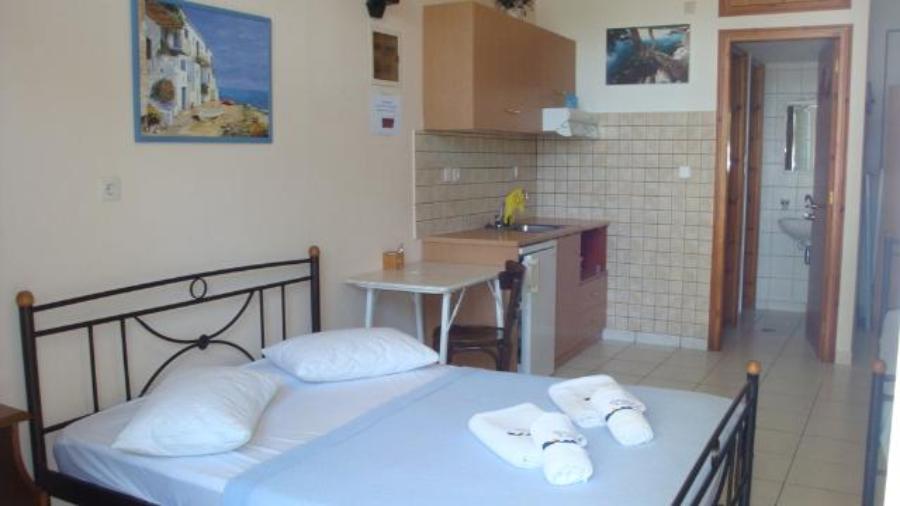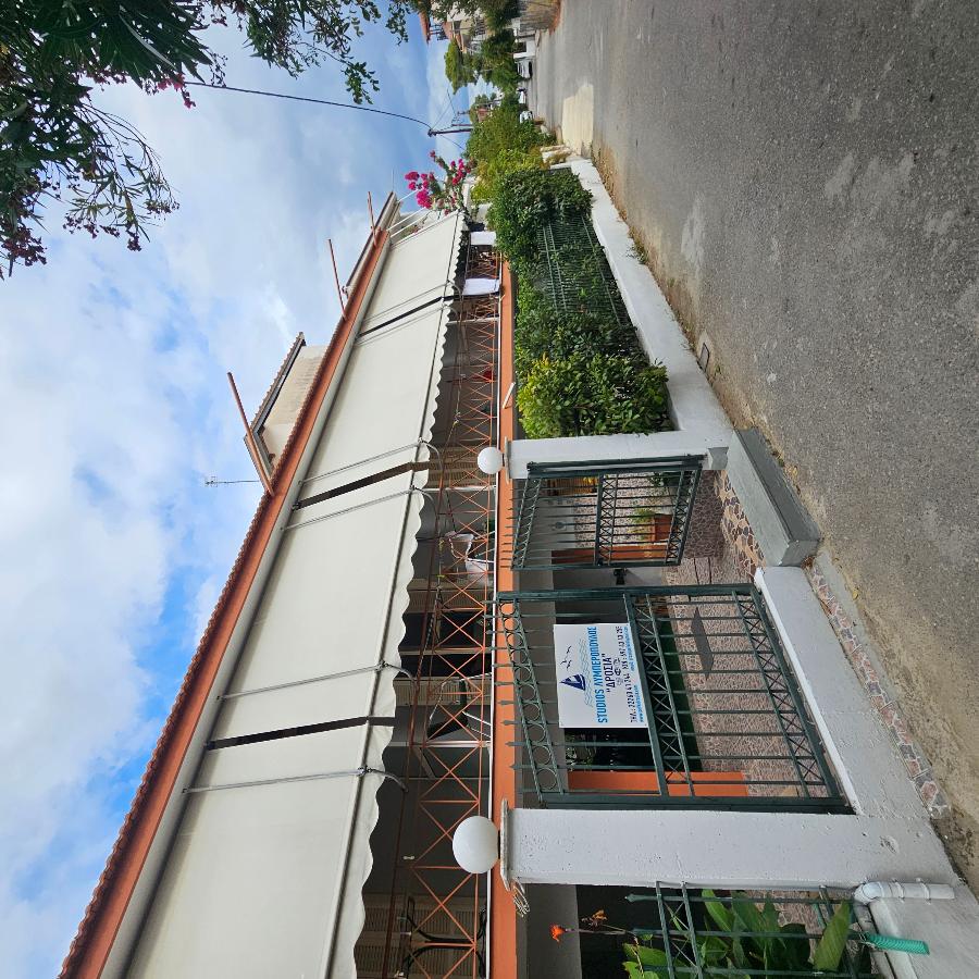 Opis i lokacija: Jednospratna kuća sa studijima u prizemlju i na prvom spratu. Nalazi se u mirnom delu centra Pefkija, u neposrednoj blizini glavnog šetališta, taverni i prodavnica. Kuća ima lepo uređeno dvorište puno zelenila i cveća.