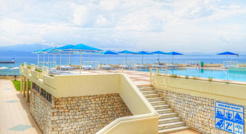 Opis i lokacija : Ovaj luksuzni rizort ima pogled na Eretrijski zaliv na Eviji. Gostima su na raspolaganju privatna plaža sa sadržajima za sportove na vodi, bazen na otvorenom i uređeni vrtovi. U objektu Palmariva Beach je dostupan besplatan WiFi. Ovaj rizort sa 4 zvezdice takođe nudi teniske terene, pikado, mini fudbal, stoni tenis, prostor za igranje i dečji klub. Gostima su na raspolaganju fitnes studio sa saunom, kao i ležaljke i suncobrani na plaži. U okviru ovog smeštajnog objekta su dostupni turistički desk i biletarnica, a ponuda uključuje i usluge iznajmljivanja automobila i bicikala. Restoran nudi jela na bazi švedskog stola za doručak, ručak i večeru. Glavni bar, bar na plaži i bar kraj bazena sa terasom su idealna mesta za opuštanje i odmor uz piće i lagane obroke. Grad Eretrija se nalazi na 3 km od objekta Palmariva Beach , a do aerodroma Elefterios Venizelos u Atini se stiže za 90 minuta vožnje. Gradski autobusi saobraćaju od hotela do centra Halkide na svakih 30 minuta.