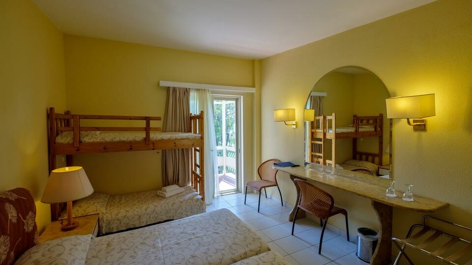 Porodični bungalov sa krevetom na sprat - Površine oko 23m2 , sadrži francuski ili dva odvojena kreveta i krevet na sprat. Maksimalni broj osoba u sobi je do četiri (2 odrasle i 2 deteta). Nalazi se u bungalov delu kompleksa.