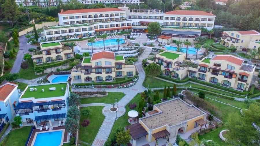 Opis i lokacija: Luksuzan hotelski kompleks se sastoji od 2 centralne zgrade i kompleksa bungalova sa obe strane puta, povezanih podzemnim prolazom . Nalazi se na oko 3 km od mesta Kalitea. Pripada grupi Aegean Star Hotels.