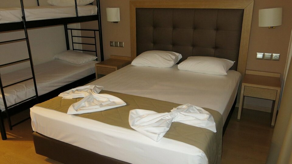 Standard soba sa krevetima na sprat - smeštajne jedinice površine oko 22 m², sa bočnim pogledom na more, strukture francuski ležaj ili dva osnovna ležaja i krevet na sprat za smeštaj dva deteta uzrasta do 11.99 ili jedne odrasle osobe. Maksimalni broj osoba u sobi je do četiri.