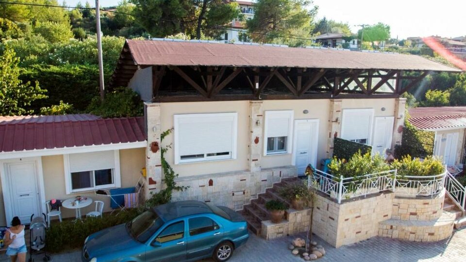 Opis i lokacija : Objekat apartmanskog tipa, kategorisan sa 3 grčka ključa za kvalitet nalazi se na ulasku u Pefkohori, nekih 50m od mora. Sastoji se od dve glavne zgrade i jedne manje aneks zgrade sa smeštajnim jedinicama, a organizovani restoran, otvoreni bazen sa delom za decu, bar pored bazena, besplatan parking, igralište i uređeno dvorište obećavaju pravi odmor. Centar Pefkohorija je na nekih 1,5km udaljenosti.