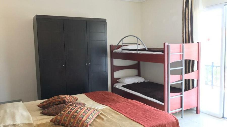 Porodična soba bočni pogled more- Smeštajna jedinica sa francuskim ( ili dva spojena kreveta) i dečjim krevetom na sprat. Kapacitet sobe: Max 4 osobe ( Odrasli: Max 2 , Deca: Max 2 )