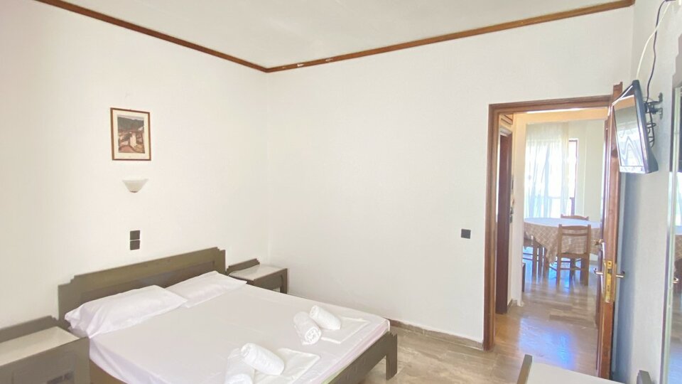 ECO apartman za 4 osobe – Nalaze se u prizemlju i nemaju TV niti klima uređaj. Sobe su opremljene francuskim krevetom ili sa dva pojedinačna. Moguće je ubaciti dodatni ležaj za decu ili odraslu osobu. Maksimalan broj osoba u sobi su četiri.
