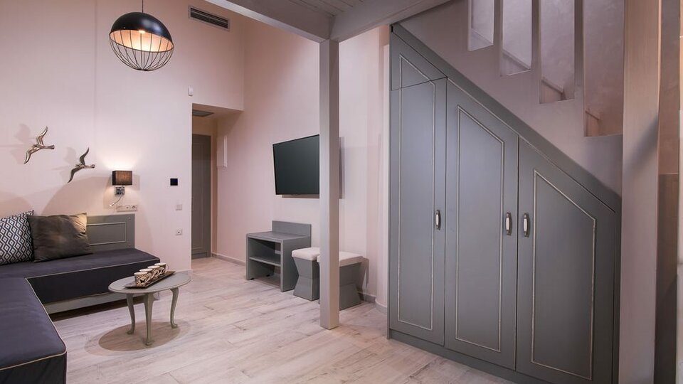Duplex suite - Moderne i prostrane sobe koje liče na mezonete. U dnevnom boravku su dve sofe a stepenicama se penje do višeg nivoa gde je jedan veliki francuski ležaj.