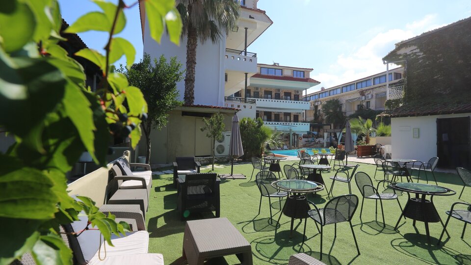 Opis i lokacija: Skrivena u mirnom delu letovališta Pefkohori ova prijatna oaza sastoji se od dve međusobno povezane zgrade smeštene oko zajedničkog dvorišta sa relaksirajućim otvorenim bazenom. Sa sobama raspoređenim na tri sprata, uključujući dvokrevetne, trokrevetne sobe i porodične apartmane, udobnost je zagarantovana. Dodatni sadržaji uključuju saunu, hidromasažnu kadu i masaže uz doplatu, kao i prostor za igru za decu i aktivnosti pod nadzorom. Za opuštanje pored bazena obezbeđene su besplatne ležaljke i suncobrani. Privatni parking je dostupan u okolini uz prethodnu rezervaciju i doplatu.