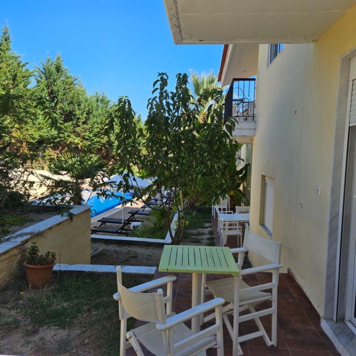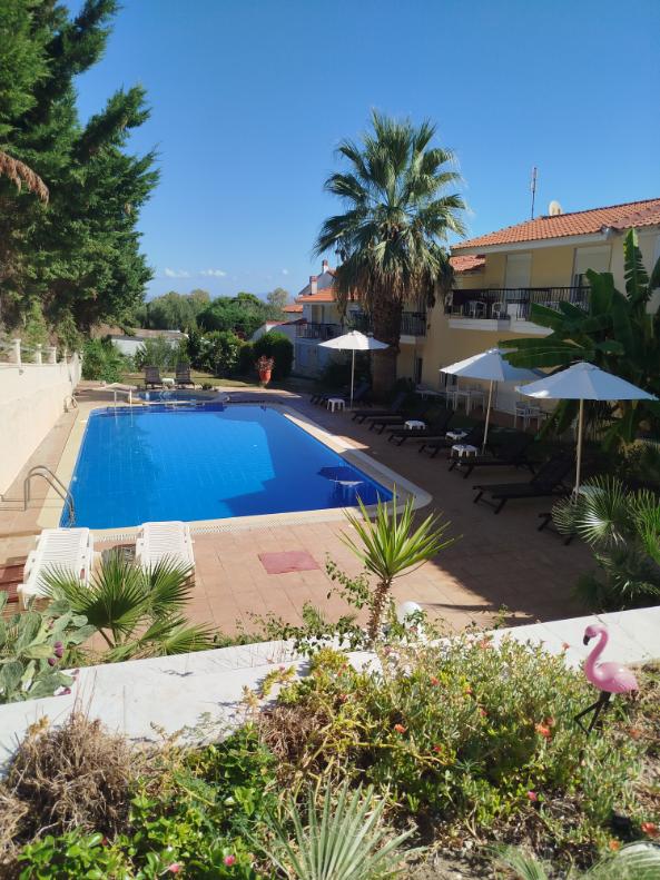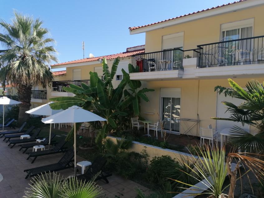 Opis i lokacija: Jednospratni kompleks sa prizemljem koji se sastoji iz više objekata. Nalazi se na oko 600 m od ulaza u Pefkohori iz pravca Paljurija i oko 950 m od centra Pefkohorija. U sklopu kompleksa se nalazi prostrano dvorište, bar i bazen sa odeljkom za decu. Smeštaj se preporučuje svim gostima koji žele miran odmor.