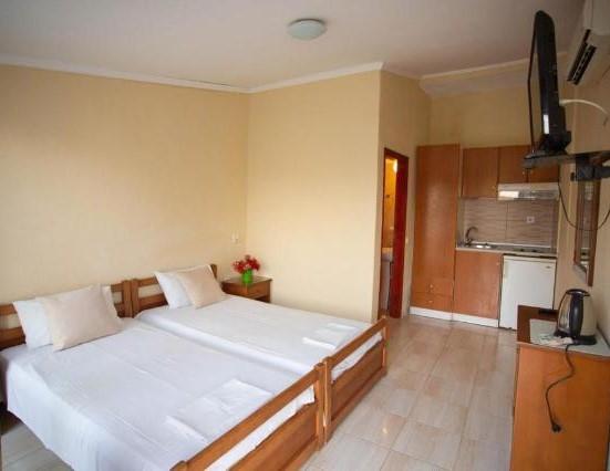 Smeštajne jedinice su opremljene TWC, TV-om, klima uređajem (uz doplatu na licu mesta), mini čajnom kuhinjom, balkonom ili terasom. Studiji u prizemlju imaju zajedničku terasu i pogled na bazen. U sklopu objekta ima Wi-Fi oko bazena (slabog protoka), dostupan u periodu od juna do septembra.