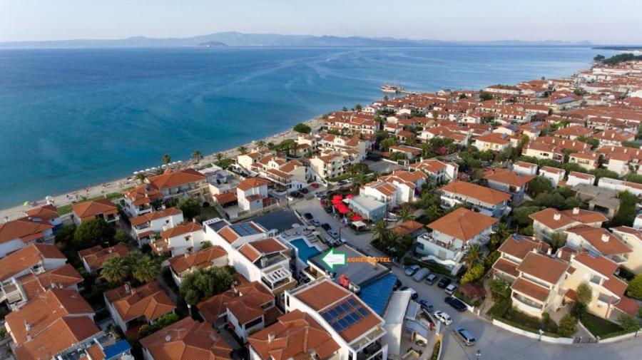 Opis i lokacija: Moderan manji hotel novijeg datuma, na odličnoj poziciji u Pefkohoriju, oko 100m od plaže i u blizini mnogih restorana, prodavnica i šetališta.