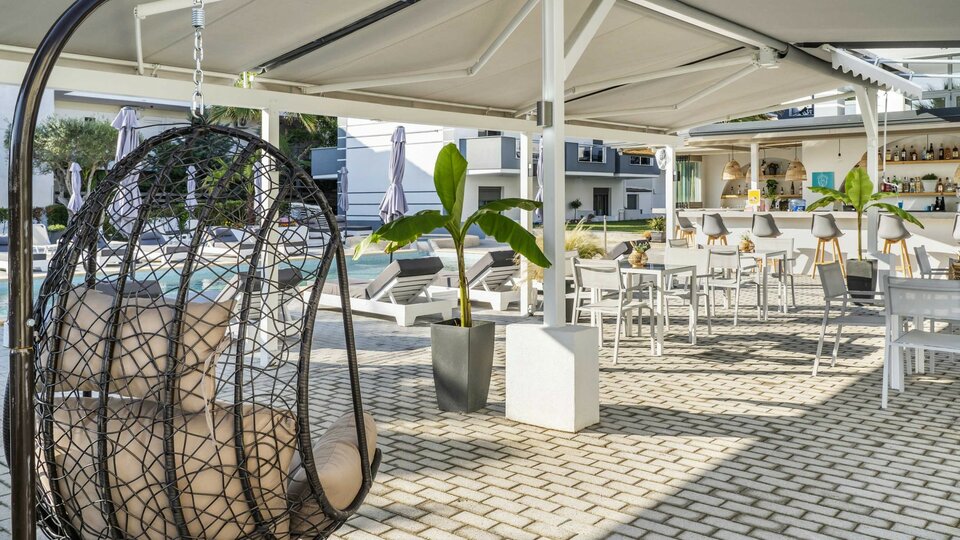 Hotelski sadržaji: Recepcija, otvoreni bazen sa delom za decu , bar pored bazena.