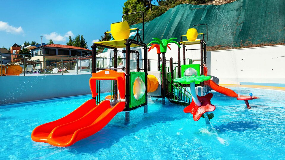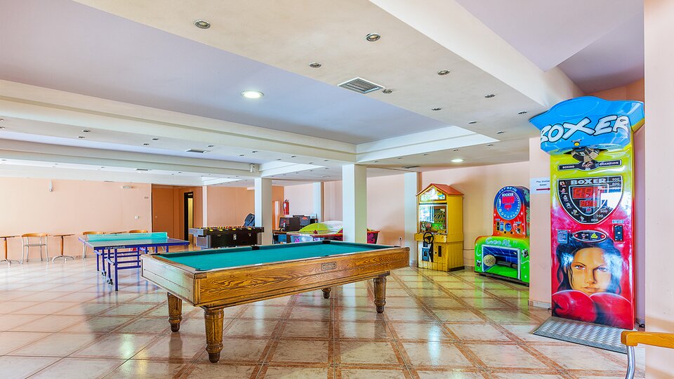 Hotelski sadržaji:Recepcija, lift, parking, restoran, lobi bar, otvoreni bazen, bar pored bazena, dečje igralište, mini klub za decu, dečji vodeni park (Splash park), stoni tenis, bilijar, basket, tenis (uz dolatu), dnevne i večernje animacije za goste hotela