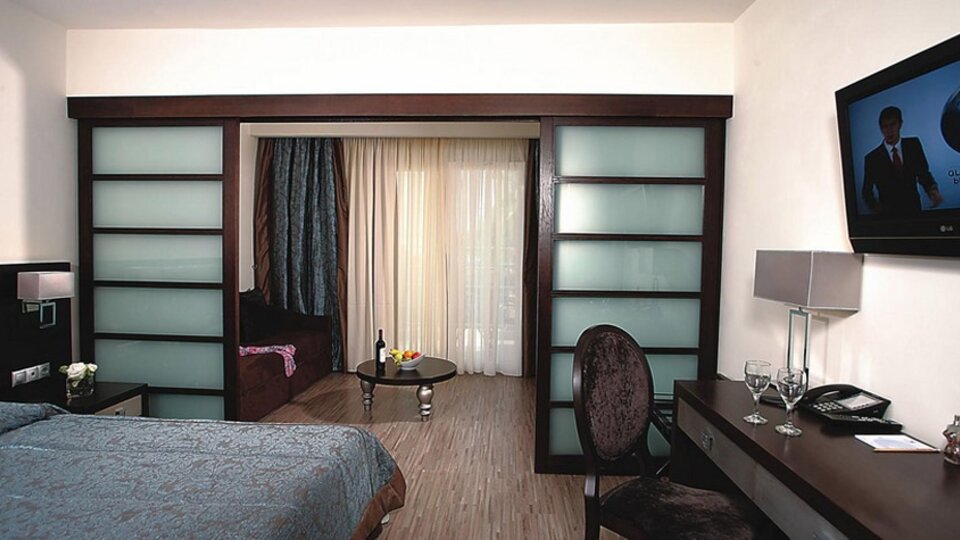 Superior soba pogled bašta / pogled more - smeštajne jedinice površine oko 27 m², sa francuskim ležajem ili dva osnovna ležaja i sofom . Sofa je namenjen za smeštaj jedne odrasle osobe ili dva deteta uzrasta do 11.99 god. Mogu biti sa pogledom na baštu ili na more. Maksimalni broj osoba u sobi je do četiri.