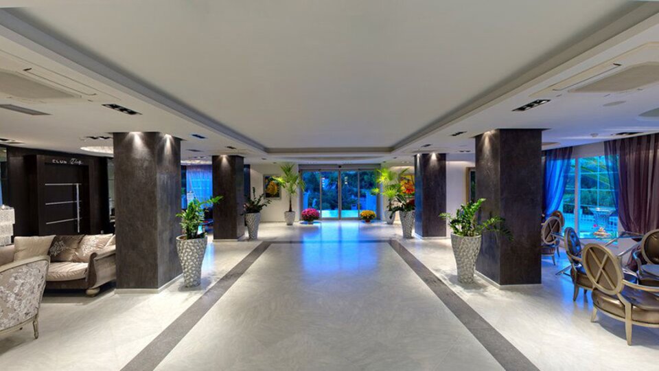 Hotelski sadržaji: Recepcija, lift, menjačnica, restoran, lobi bar, bar pored bazena, bazen sa odeljkom za decu, mini klub (za decu uzrasta od 4 do 12 god.), teretana, Spa centar (uz doplatu na licu mesta), mogućnost sportova na vodi (uz doplatu na licu mesta), večernje animacije za goste hotela...
