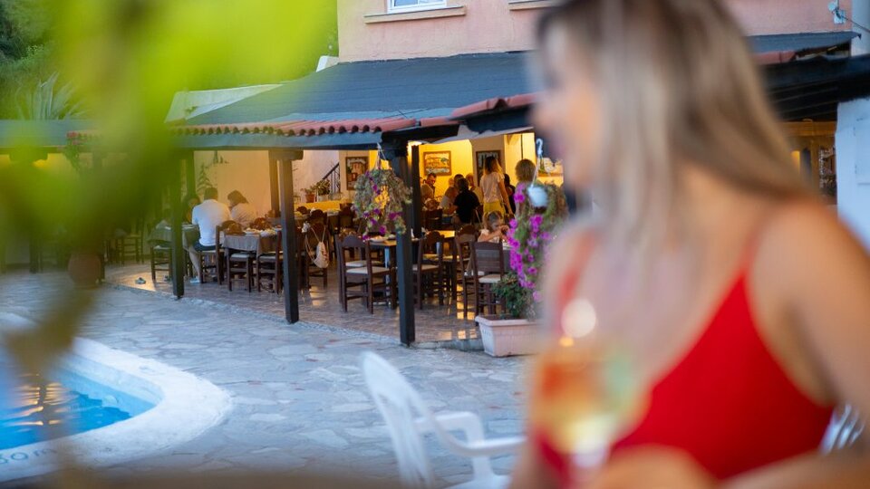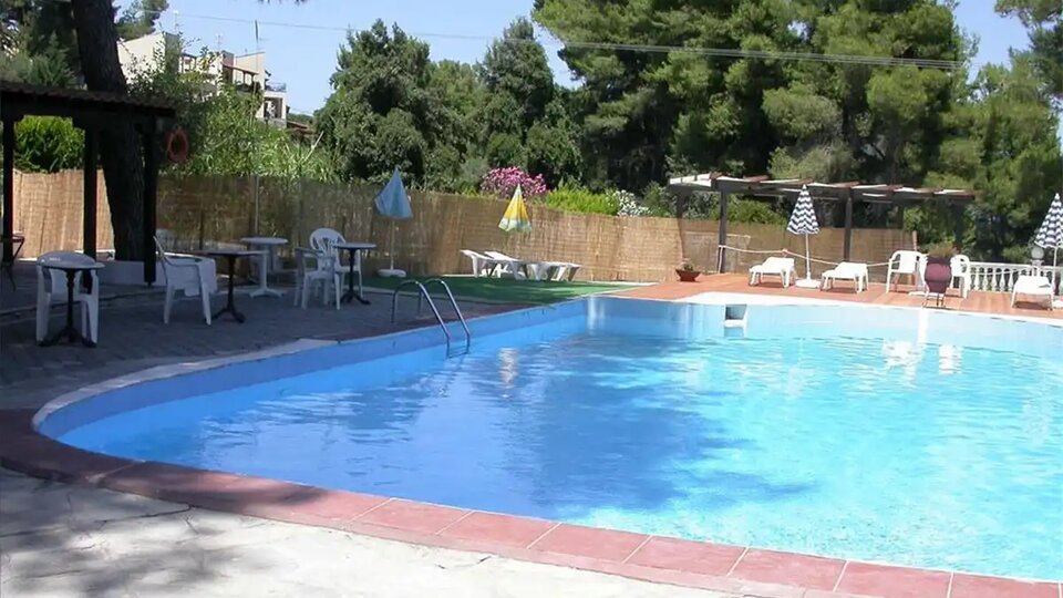 Hotelski sadržaji: Recepcija, restoran, bar, otvoreni bazen, parking.