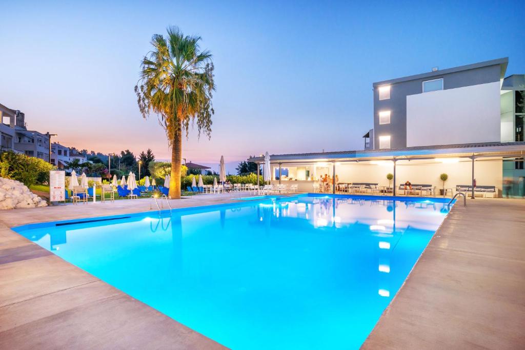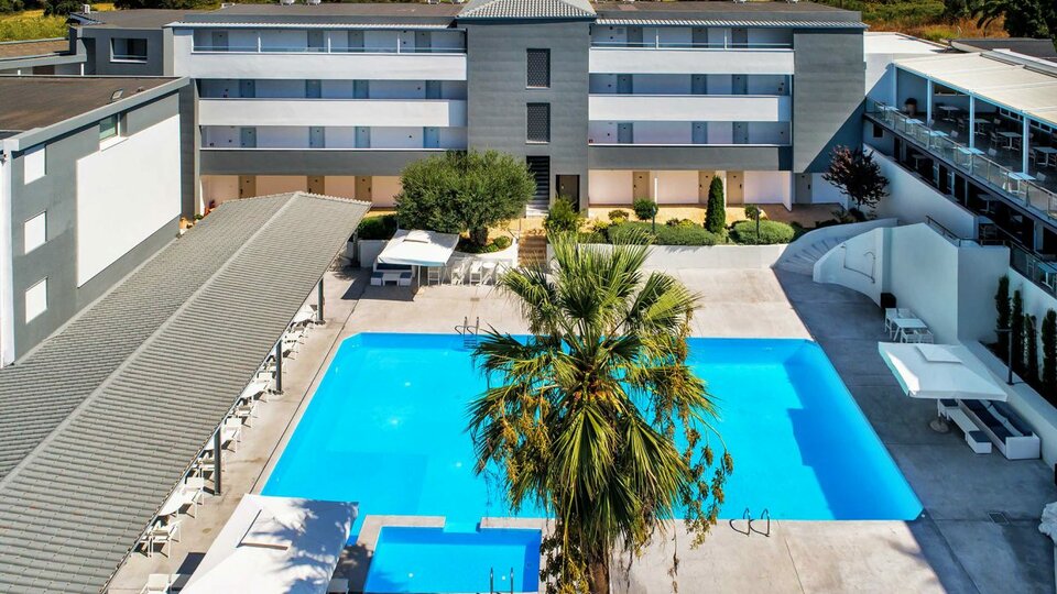 Opis i lokacija: Smešten u blizini živopisnog mesta Kriopigi, na najprivilegovanijem mestu , na 120 metara nadmorske visine, ovaj porodični hotel ima prelep pogled na zaliv Toroneos i okružen je šumom i maslinjacima. Hotel ima mnogo opcija za smeštaj koje odgovaraju parovima i porodicama, a koje su u skladu sa lokalnim arhitektonskim stilom. Za najmlađe goste hotel nudi igralište, a za one koji traže opuštanje tu je veliki i miran bazen. Kasandra, najzapadnije poluostrvo Halkidikija u Grčkoj, poznato je po svojim očuvanim prirodnim lepotama, noćnom životu, godišnjim festivalima i beskrajnim mogućnostima za zabavu. Centar mesta Kriopigi je na udaljenosti od 300 metara, dok je poznato letovalište Kalitea udaljeno oko 2 km.