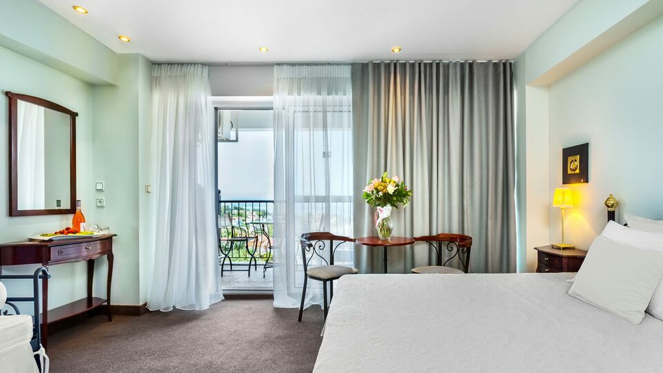 Klasik soba pogled more - Veličine oko 25m2. Namenjene za tri osobe . Sadrže francuski ležaj (ili dva spojena kreveta) i pomoćni krevet.