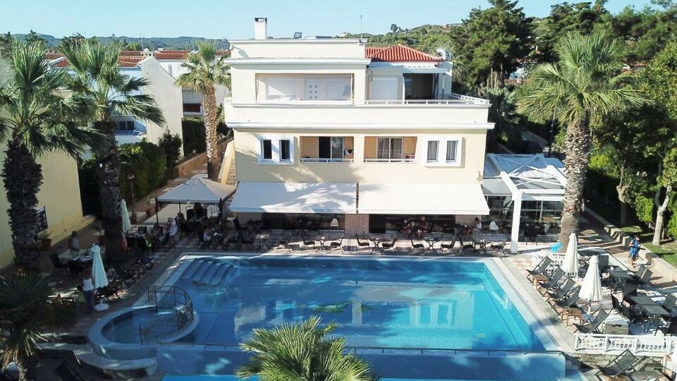 Opis i lokacija: Smešten na odličnoj lokaciji, apartmani i studiji Naias su blizu obale u Haniotiju sa baštama i stazama koje se spuštaju do plaže. Hanioti je jedno od najpopularnijih turističkih odmarališta na Halkidikiju. Hotel nudi visokokvalitetne usluge i moderne sadržaje koji će vaš boravak učiniti ugodnijim. To je idealno mesto za opuštanje, kako za parove tako i za porodice. Izgrađen ispred plaže, udaljen je samo 250m od centra mesta Hanioti, gde se nalaze restorani, taverne i barovi. Hotel Naias se sastoji od dve zgrade odvojene putem, nudeći moderne pogodnosti i tradicionalno grčko gostoprimstvo.