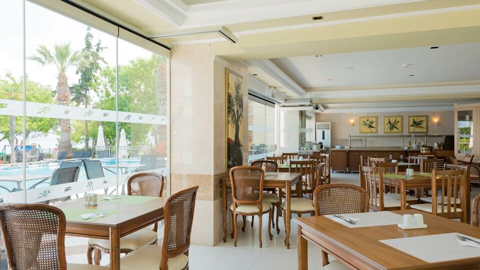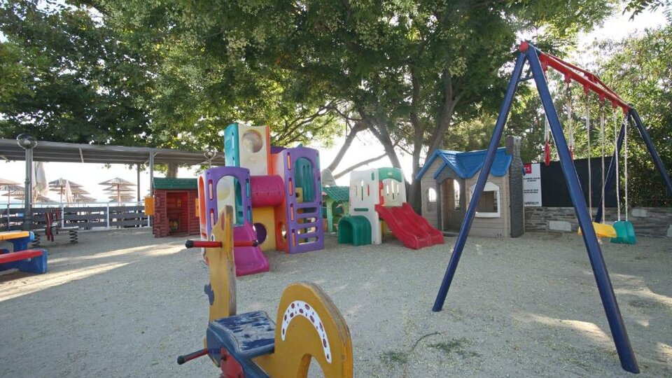 Hotelski sadržaji:Recepcija, restoran, taverna na plaži, bazen sa odeljkom za decu, bar pored bazena i na plaži, dečije igralište, odbojka na pesku, večernja animacija.