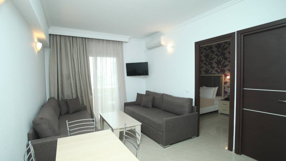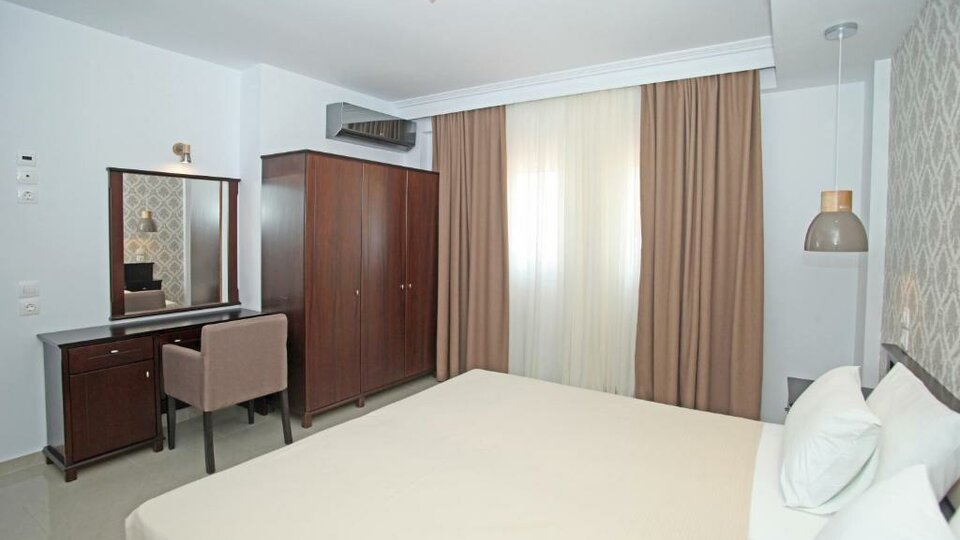 Svi studiji i apartmani su opremljeni TWC-om, TV-om, klima uredjajem, mini čajnom kuhinjom, sef (uz doplatu na licu mesta) i balkonom ili terasom. Sve smeštajne jedinice imaju pogled na baštu ili unutrašnji deo hotelskog komplesa. Mogućnost koriščenja kreveca za bebe uz prethodnu najavu je besplatno.