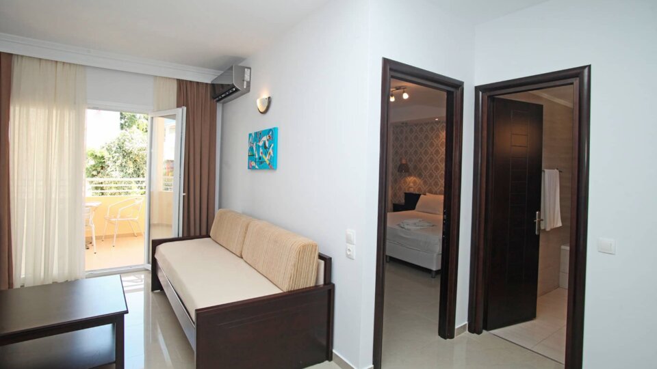 Superior studio city/inland - sobe površine 25-30 m², strukture francuski ležaj manjih dimenzija i sofa (predviđene za smeštaj jedne odrasle osobe ili dva deteta uzrasta do 11.99 god.) . Ovaj tip smeštajnih jedinica je pozicioniran u obe zgrade hotelskog kompleksa. Studiji su renovirani 2019. godine.
