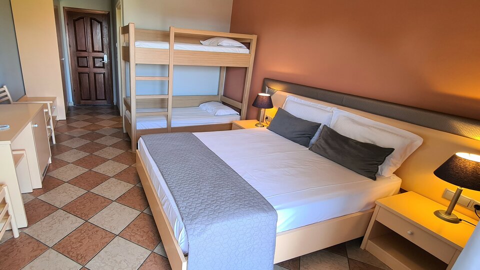 Komfort porodična soba - Prostrane sobe veličine oko 31m2 predviđene za do pet osoba.Sadrže francuski, jedan singl krevet i sofu.