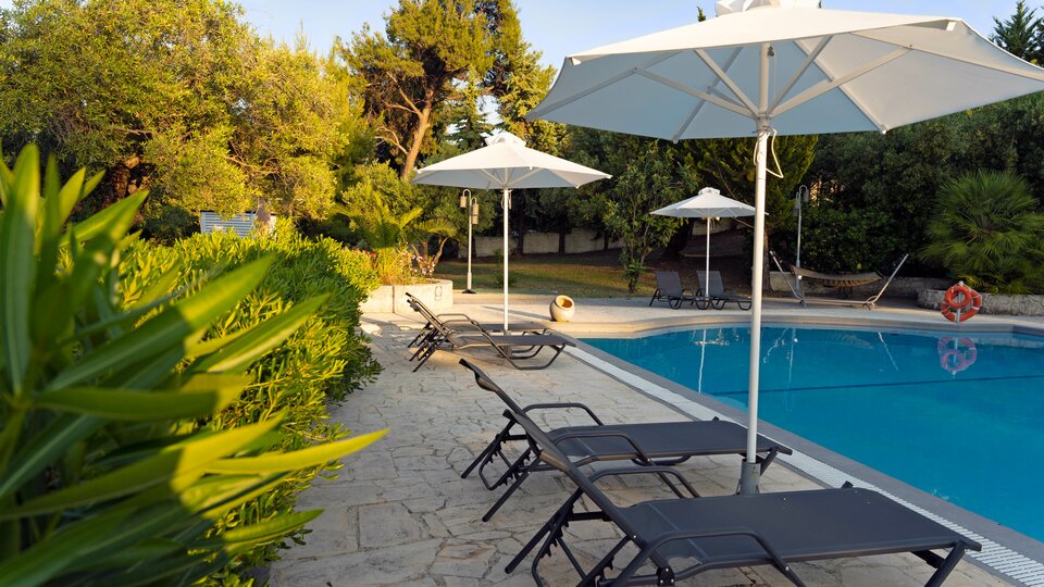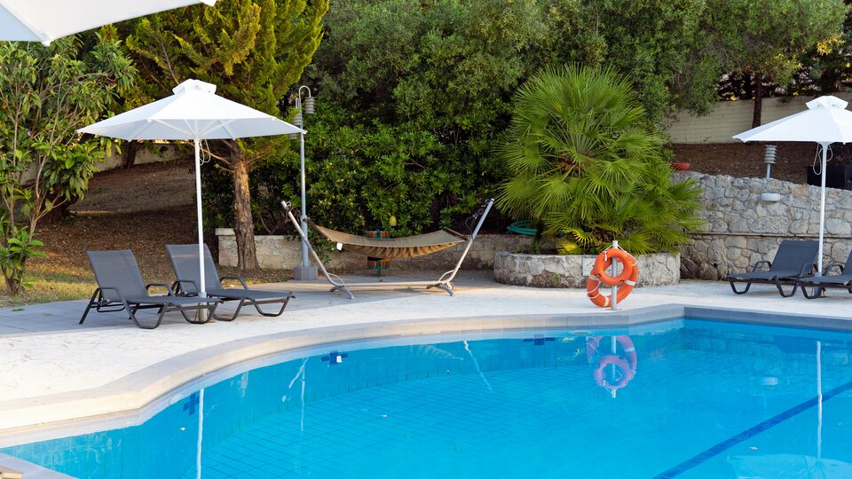 Ležaljke i suncobrani: Dostupni za goste hotela bez doplate oko bazena.