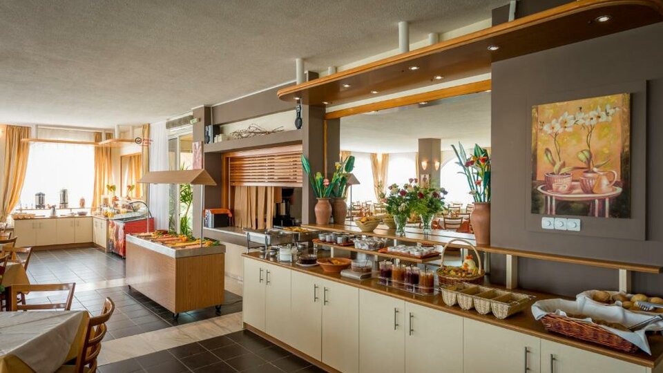 Hotelski sadržaji: Recepcija, restoran, a la carte restoran, lobi bar, suvenirnica, parking, bazen sa delom za decu, bar pored bazena, mini klub za decu, dečje igralište, tereni za tenis , košarku , fudbal , odbojku, stoni tenis, bilijar, večernja animacija za goste hotela.