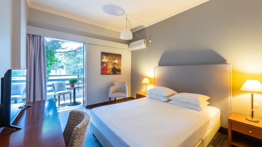 Dvokrevetna soba (Achaios zgrada) – Smeštene u zgradi "Achaios", okružene zelenilom, imaju francuski ili dva odvojena kreveta i pomoćni ležaj za 3. osobu ( najčešće krevet na rasklapanje ili singl krevet). Drugo dete može biti samo dete do 6 godina i deli krevet sa roditeljima. Maksimalni broj osoba u sobi je do četiri. Kapacitet sobe: Max 4 osobe ( Odrasli: Max 3 , Deca: Max 2)