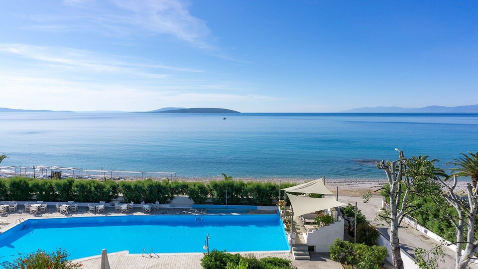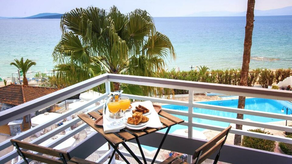 Udaljenost od mora i plaže: Hotelski kompleks se nalazi uz plažu. Plaža je kombinacija peska i šljunka. Hotel ima uslugu iznajmljivanja peškira za plažu.