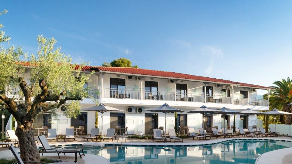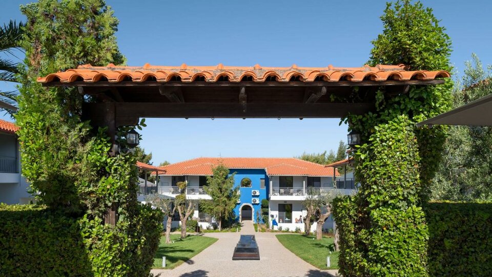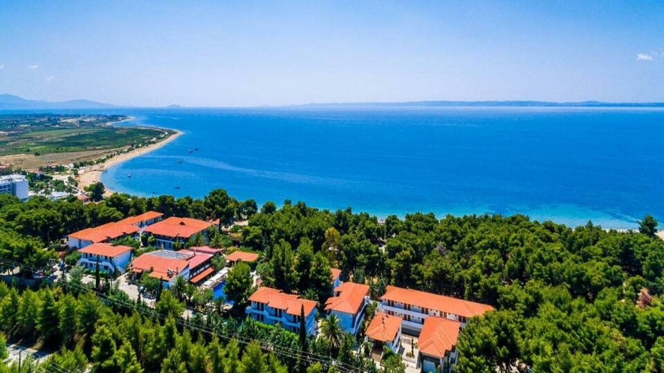 Opis i lokacija: Hotelski kompleks bungalova, okružen borovom šumom i uređenom baštom, sastoji se od 12 niskih zgrada. Nalazi se.na početku poluostrva Sitonija, u malom mestu Psakoudija, na oko 20 km od Nea Mudanje.