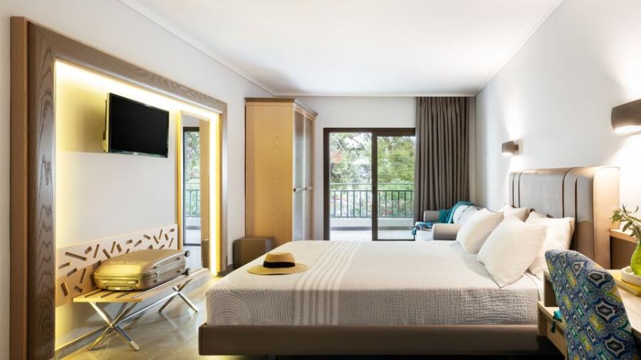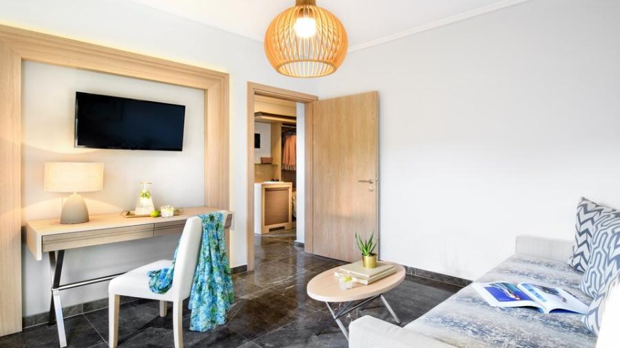 Suite pogled dvorište/pogled bazen - smeštajne jedinice površine oko 35 m² sa francuskim ležajem ili dva osnovna ležaja u spavaćoj sobi i sofom u dnevnom boravku. Sofa je namenjena za smeštaj jedne odrasle osobe ili dva deteta uzrasta do 11.99 god. Mogu biti sa pogledom na dvorište ili bazen. Maksimalni broj osoba u sobi je do četiri. Kapacitet sobe: Max 4 osobe ( Odrasli: Max 3 , Deca: Max 2)