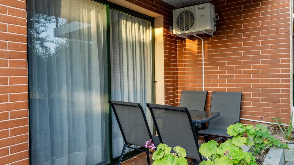 Apartman B - potpuno renovirana smeštajna jedinica površine oko 42m2, sastoji se od odvojene spavaće sobe sa francuskim krevetom i velikog dnevnog boravka sa dva odvojena kreveta i udobnom sofom na razvlačenje, za maksimalno 5 odraslih osoba. Kapacitet sobe: Max 5 osobe ( Odrasli: Max 5 , Deca: Max 3 )