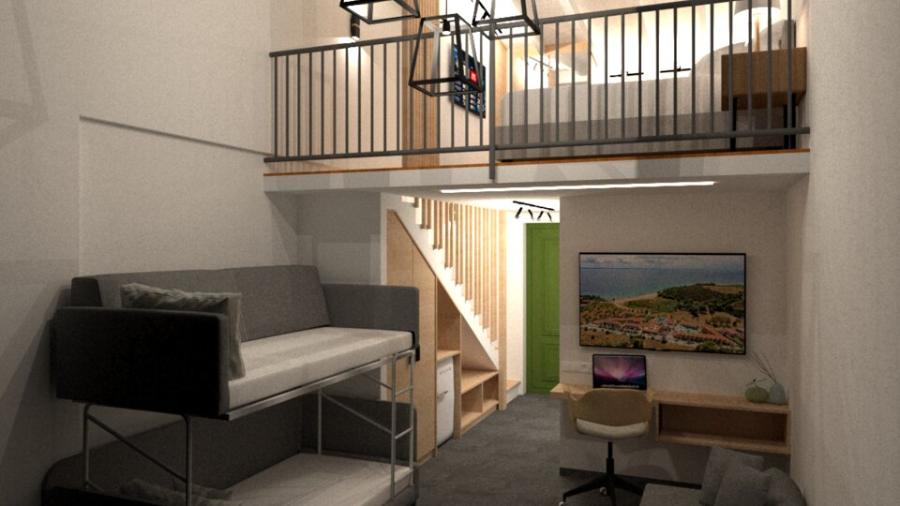 Porodična soba - smeštajne jedinice površine oko 21 m² nalaze se na gornjim spratovima, namenjene su za 2 odrasle osobe i 2 dece (bračni krevet sa krevetom na sprat). Kapacitet sobe: Max 4 osobe ( Odrasli: Max 2 , Deca: Max 2 )