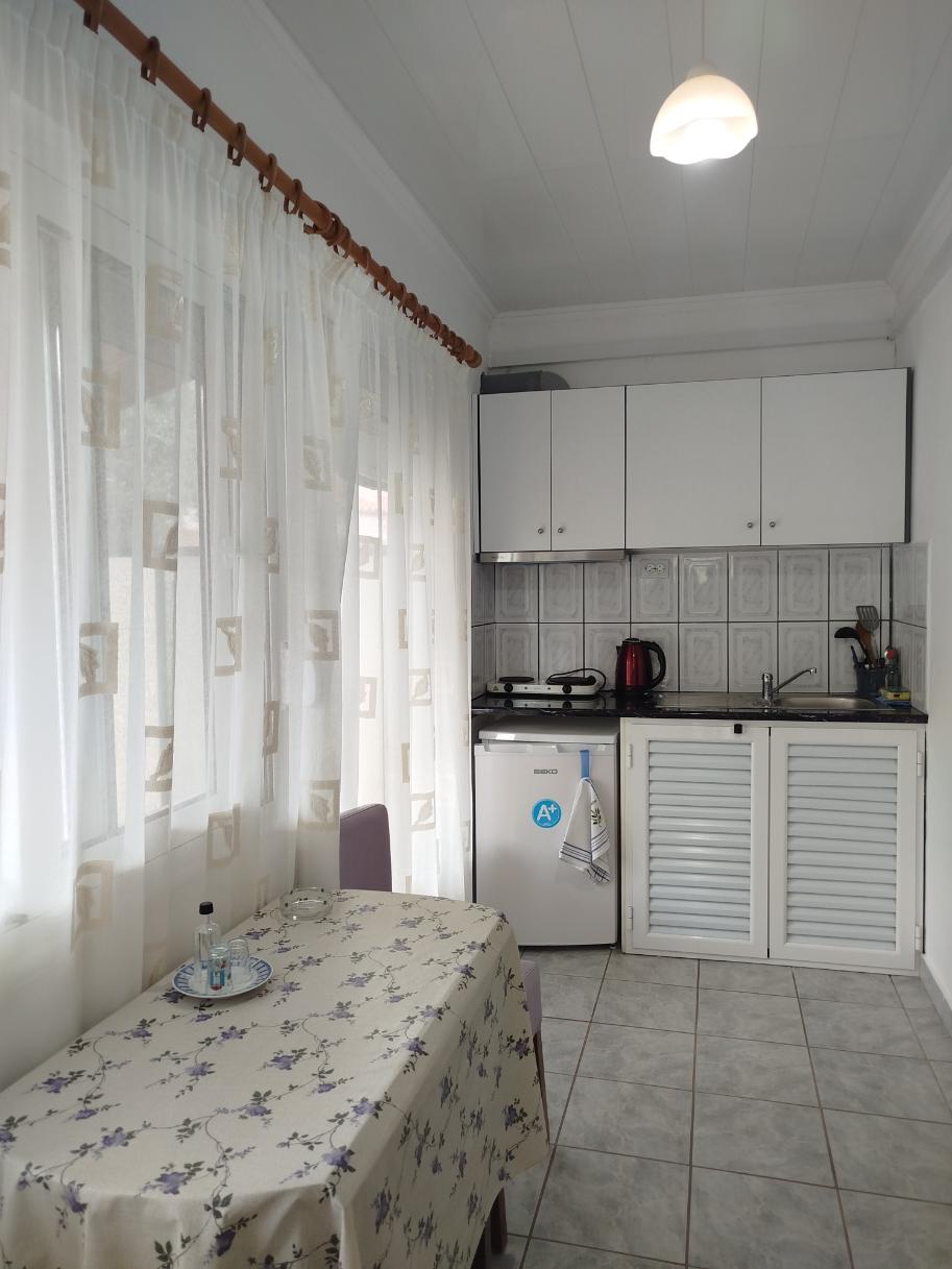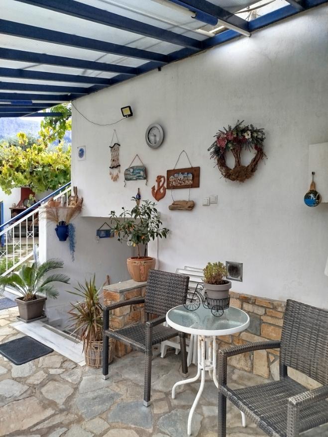 Opis i lokacija: Jednospratna kuća nalazi se na odličnoj lokaciji, na glavnom putu, u mirnom delu Skala Potamije. Od centra, marketa, pekare i plaže udaljena je oko 600 m. U prostranom dvorištu kuće na raspolaganju je garnitura za sedenje, sadržaji za decu i roštilj.