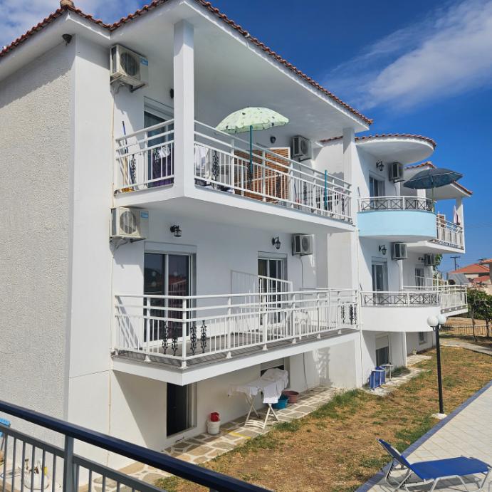 Opis i lokacija: Jednospratni kompleks sa visokim prizemljem koji čine dve zgrade. Nalazi se u mirnom delu i širem centru Skala Potamije, ispod glavne magistrale. U sklopu kompleksa nalazi se bazen i bar.