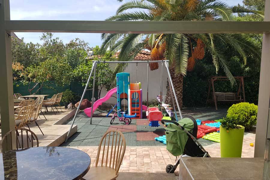 Hotelski sadržaji: Recepcija, bar, restoran, otvoreni bazen sa delom za decu, mini igralište za decu, večernje animacije.