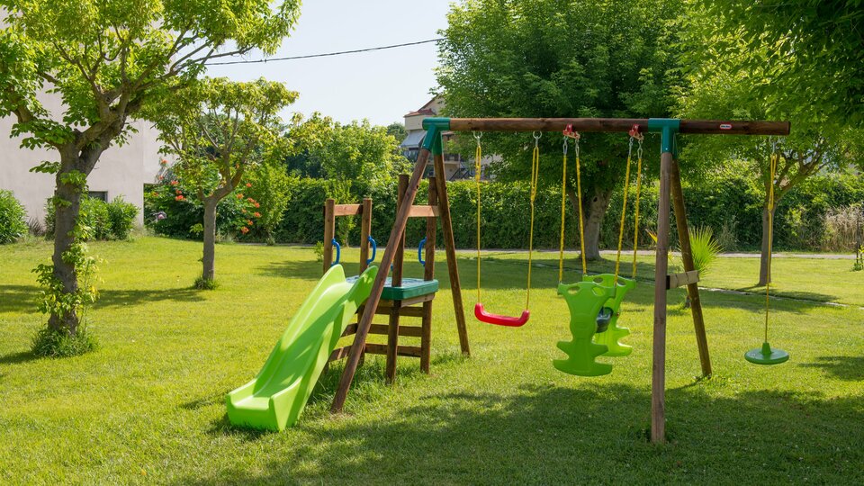 Hotelski sadržaji: Recepcija, bazen, bar pored bazena, restoran, dečije igralište, teniski teren (uz doplatu na licu mesta), parking.