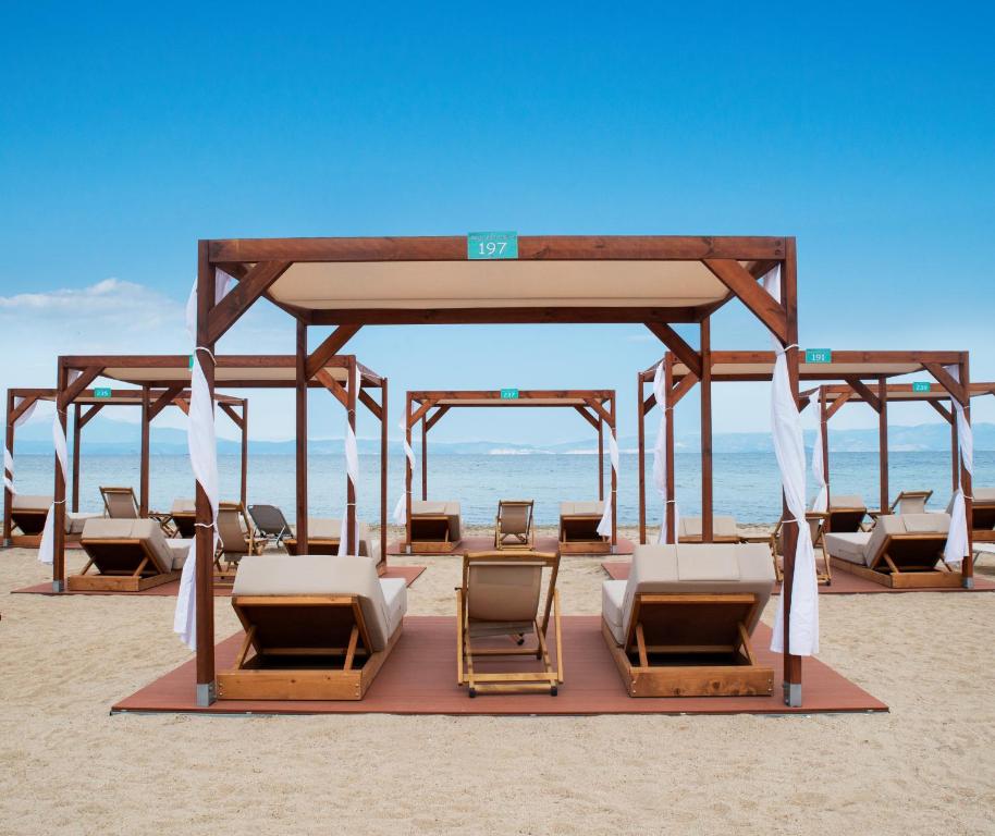 Ležaljke i suncobrani: Dostupni za goste hotela bez doplate oko bazena i na plaži. Peškiri za plažu se mogu iznajmiti uz depozit i doplatu na licu mesta.