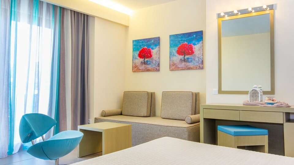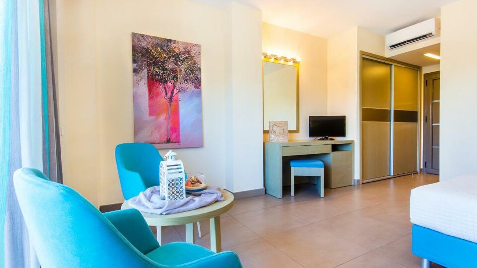 Junior porodični suite - smeštajne jedinice površine 35-40 m², Sastoje se od spavaće sobe u kojoj su francuski ležaj i sofa i dečje sobe sa dva kreveta. Sa terase imaju izlazi na bazen. Maksimalni broj osoba u sobi je do pet.