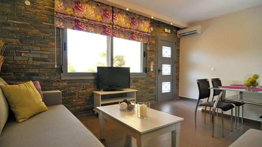 Apartman na dva nivoa - Apartmani veličine oko 55m2 imaju dva nivoa i mogu da prime do 4 osobe.Na gornjem nivou se nalazi dnevni boravak i kuhinja, kupatilo i veranda. Postoji veliki kauč na razvlačenje koji može da primi 2 osobe. Na donjem nivou nalazi se glavna spavaća soba sa bračnim krevetom, kadom za 2 osobe u sobi i drugo kupatilo. Kapacitet sobe: Max 4 osobe ( Odrasli: Max 3 , Deca: Max 2)