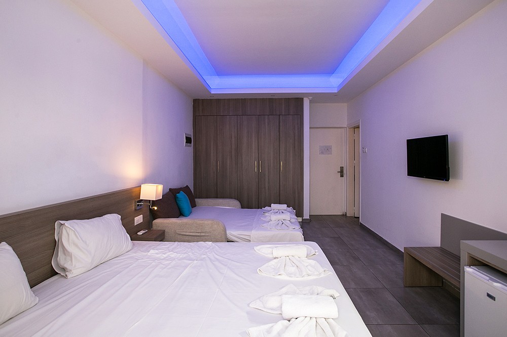 Smeštaj: Executive Studio su dvokrevetne sa pomoćnim ležajem (sofa na rasklapanje). Moderno su opremljene twin krevetima, TV-om, WiFi-jem, kupatilom sa kadom/TWC-om i fenom, mini frižiderom, klima uređajem i balkonom. Mogu smestiti maximum 4 osobe.