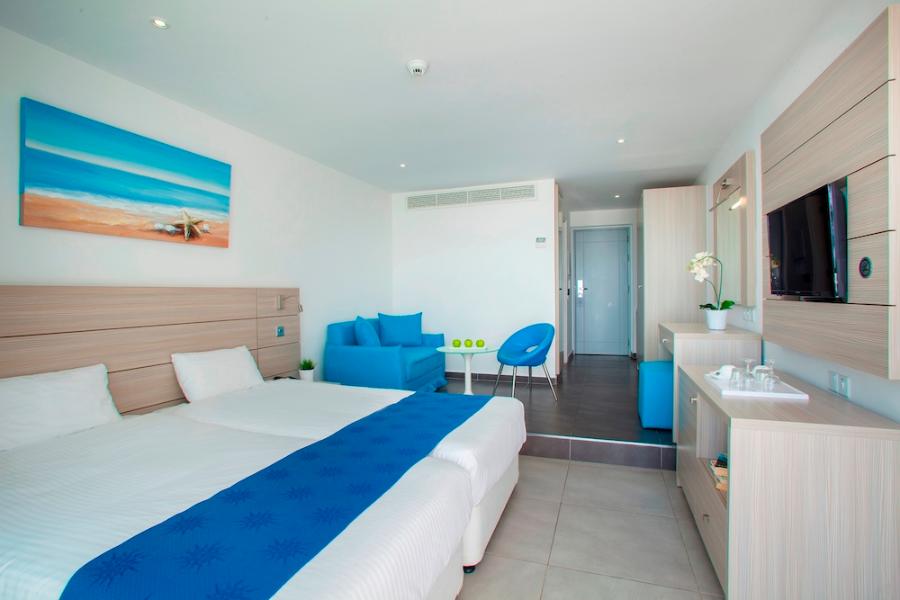 - Junior Suite Sea View – sobe su sa pogledom na Mediteran, obalu Cape Greco, ribarsku luku ili bazen. Veće su površine (39m + 6m balkon) sa delom za sedenje, zbog čega su savršen izbor za parove ili porodice koje traže udobnost. Sobe su dvokrevetne sa mogućnošću pomoćnog ležaja (kreveta na razvlačenje) za dete ili odraslu osobu, kao i baby cot-a za bebu do 2 godine. Mogu smestiti maximum 4 osobe.