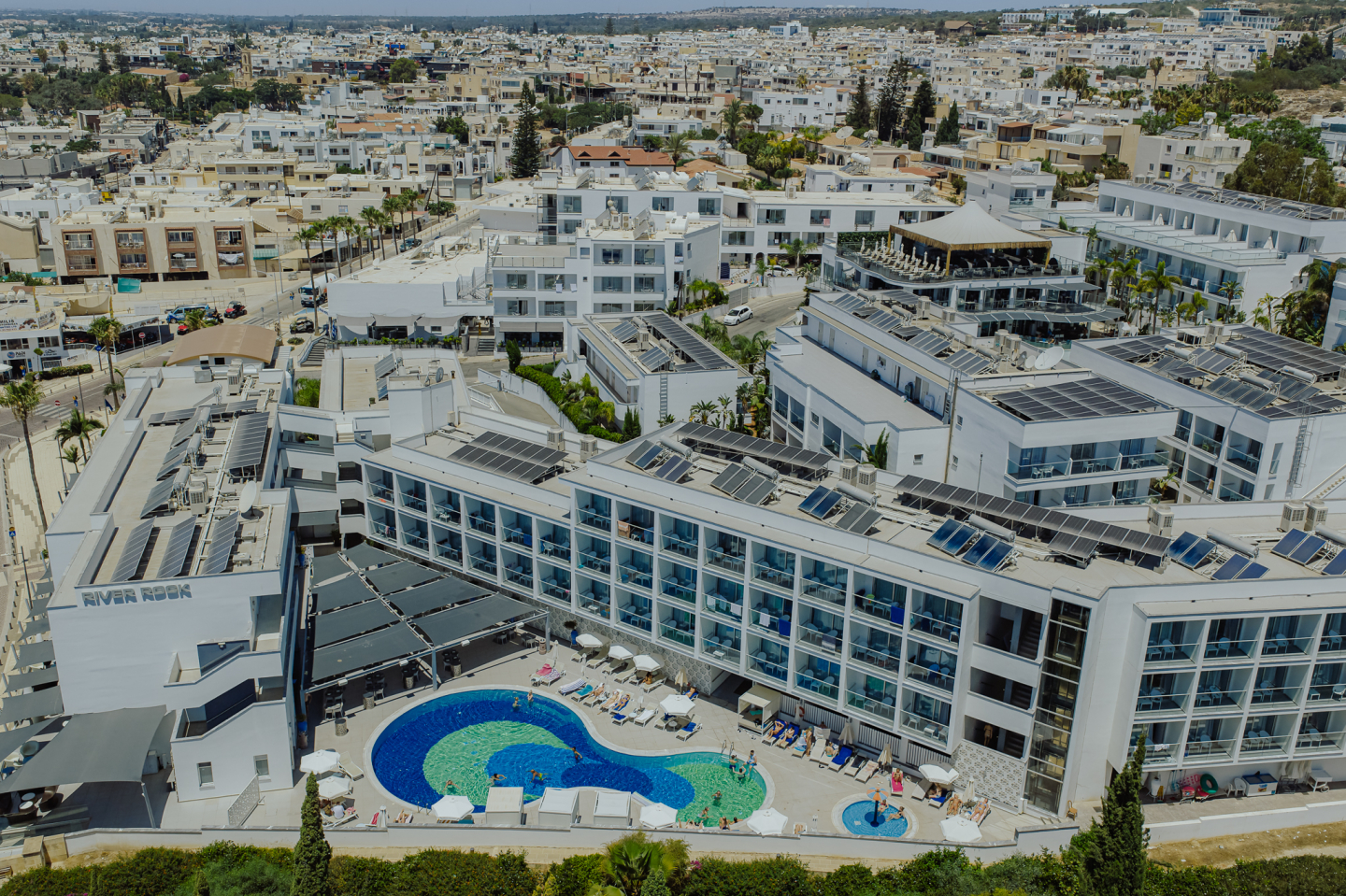 River Rock Hotel 3* je novi moderan hotel koji pripada lancu Golden Reef hotela. Nalazi se na oko 5 minuta hoda od centra Aja Nape, u neposrednoj blizini muzeja Thalassa i na oko 10 minuta hoda od gradske plaže Limanaki.
