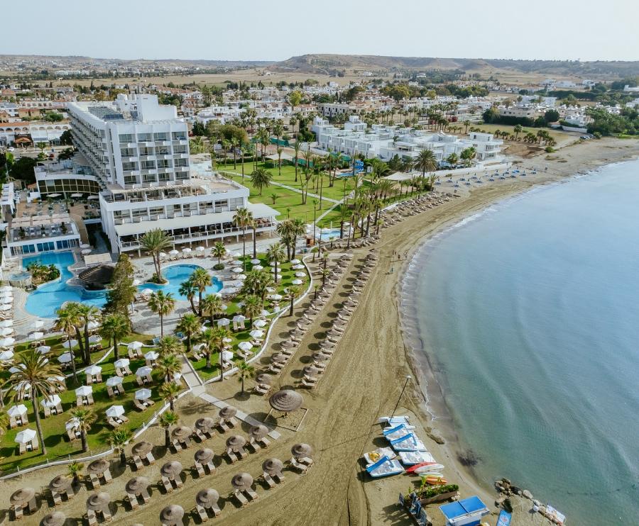 Golden Bay Beach 5* je luksuzan hotel sa 5*, smešten u zelenom okruženju na samo 100m od peščane plaže. Nalazi se na oko 10km istočno od centra Larnake.