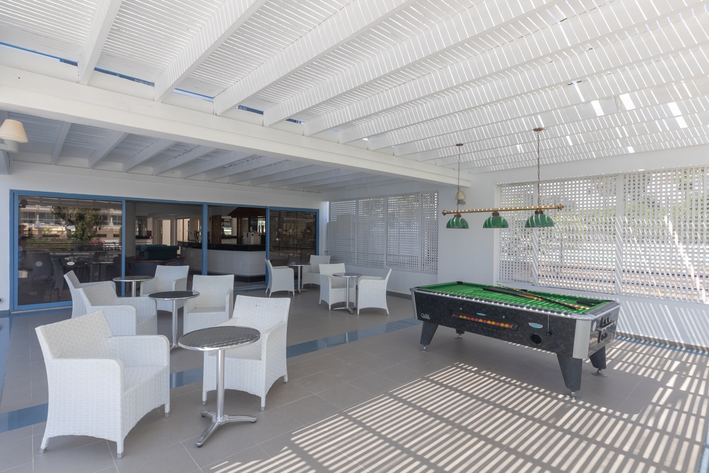 Hotelski sadržaj: Hotel poseduje recepciju, dva restorana, dva bara, bazen na otvorenom, bazen za decu, teretanu, stoni tenis, lanudry servis (uz doplatu), zabavni program u sezoni i parking.