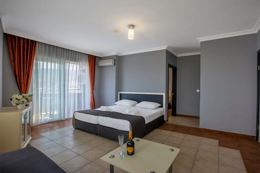 Smeštaj: Hotel poseduje 118 soba. Standardne sobe oko 25 m² - dvokrevetne ili dvokrevetne sa pomoćnim ležajem, opremljene TWC-om, TV-om, klima uređajem, fenom, mini barom i sefom (uz doplatu), balkonom. Family sobe oko 45 m² namenjene za smeštaj minimum 2 odrasle osobe ili 2 odrasle osobe i 2 dece do 12 godina, opremljene kao standardne sobe, a maksimum 2 odrasle osobe i 3 dece ( do 12 godina).