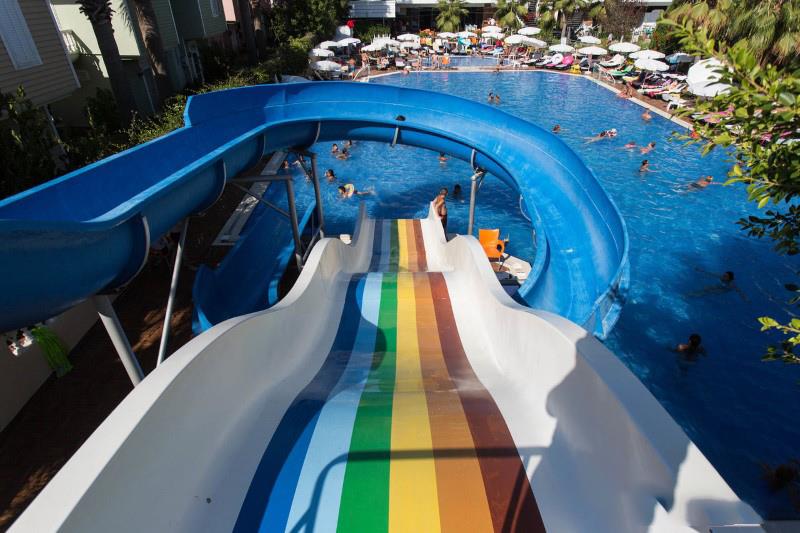 Sadržaj: Recepcija, restoran, lobby bar, bar pored bazena, Snack bar na plaži, Disco bar, bazen za odrasle i decu na otvorenom, zatvoreni bazen za odrasle i decu(često ne radi u letnjoj sezoni), stoni tenis,tenis,mini fudbal,odbojka, pikado, fitness centar, tursko kupatilo i sauna, dečiji park, mini klub za decu (uzrasta 3-12 godina), animacije. Uz doplatu se mogu koristiti: bilijar, usluge masaža i tretmani u u turskom kupatilu, internet i video igre.